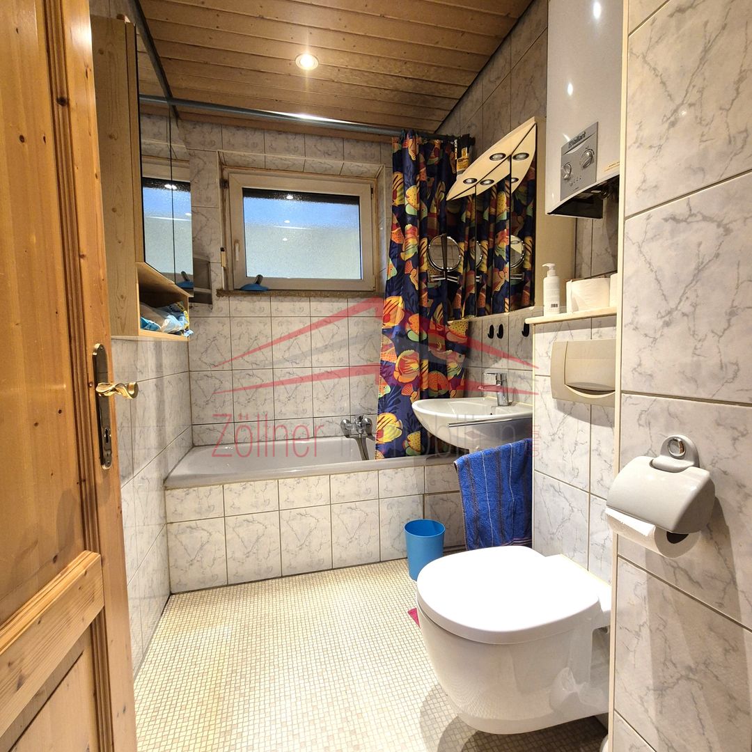 Das Badezimmer ist zeitlos gefliest und mit Badewanne, Waschbecken und WC ausgestattet. Ergänzend steht ein praktischer Abstellraum innerhalb der Wohnung zur Verfügung. Die letzte umfassendere Modernisierung erfolgte im Jahr 1996.