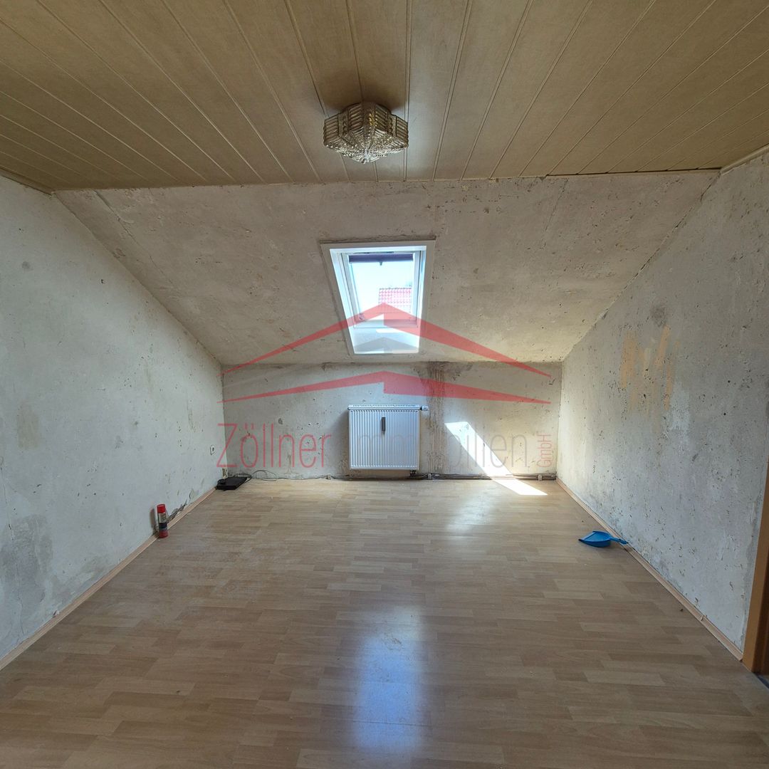 Im noch nicht sanierten Dachgeschoss befindet sich ein Wohnzimmer, ein Esszimmer, zwei Schlafräume, ein Tageslichtbad, eine Küche und ein Flur.
