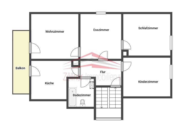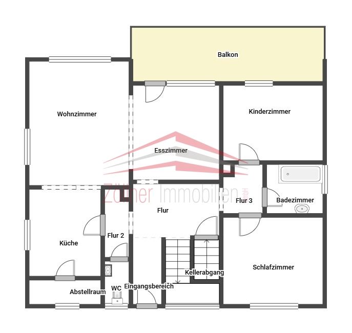 Ein nach Süden ausgerichteter Balkon ist sowohl über die Küche als auch über das Wohnzimmer zu erreichen.