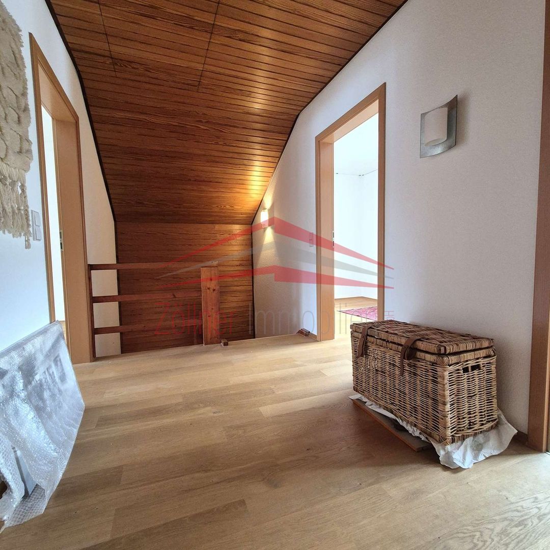 Im Erdgeschoss empfängt Sie ein heller Wohn- und Essbereich mit direktem Zugang zur großen Terrasse und zum Garten. Die bodentiefen, großflächigen Fenster sorgen für eine angenehme Lichtdurchflutung, im Wohnzimmer sind bereits dreifach verglaste Fenster verbaut. Die separate Küche ist funktional geschnitten und bietet ausreichend Stauraum und Arbeitsfläche. Bodenbeläge bestehen überwiegend aus Parkett und Fliesen, Wände sind tapeziert und die Decken sind teilweise mit Holz verkleidet, was den wohnlichen Charakter unterstreicht.