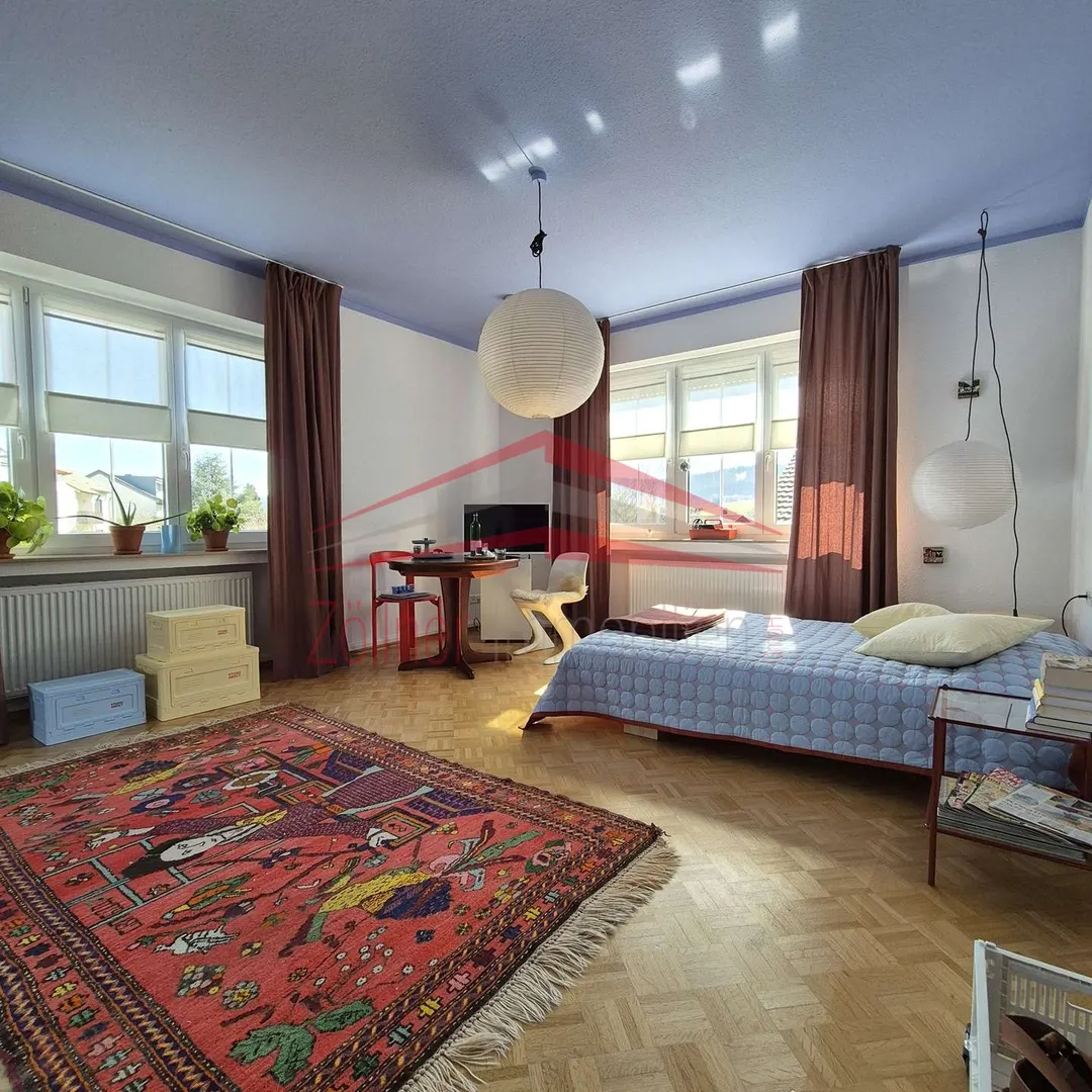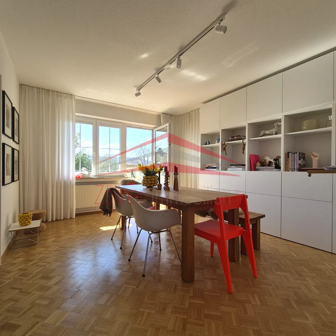 Besonders angenehm ist der nach Süden ausgerichtete Balkon, der zusätzlichen Aufenthaltsraum im Freien schafft. Das Tageslichtbad ist mit Badewanne, Dusche und zwei Waschbecken ausgestattet. Ergänzt wird das Raumangebot durch ein separates WC. In den Wohn- und Schlafräumen sowie im Esszimmer sorgt Parkettboden für eine warme Wohnatmosphäre, in den übrigen Bereichen sind Fliesen verlegt.