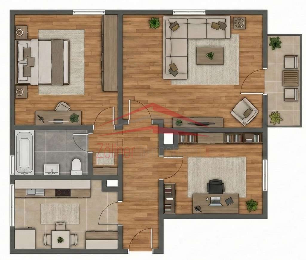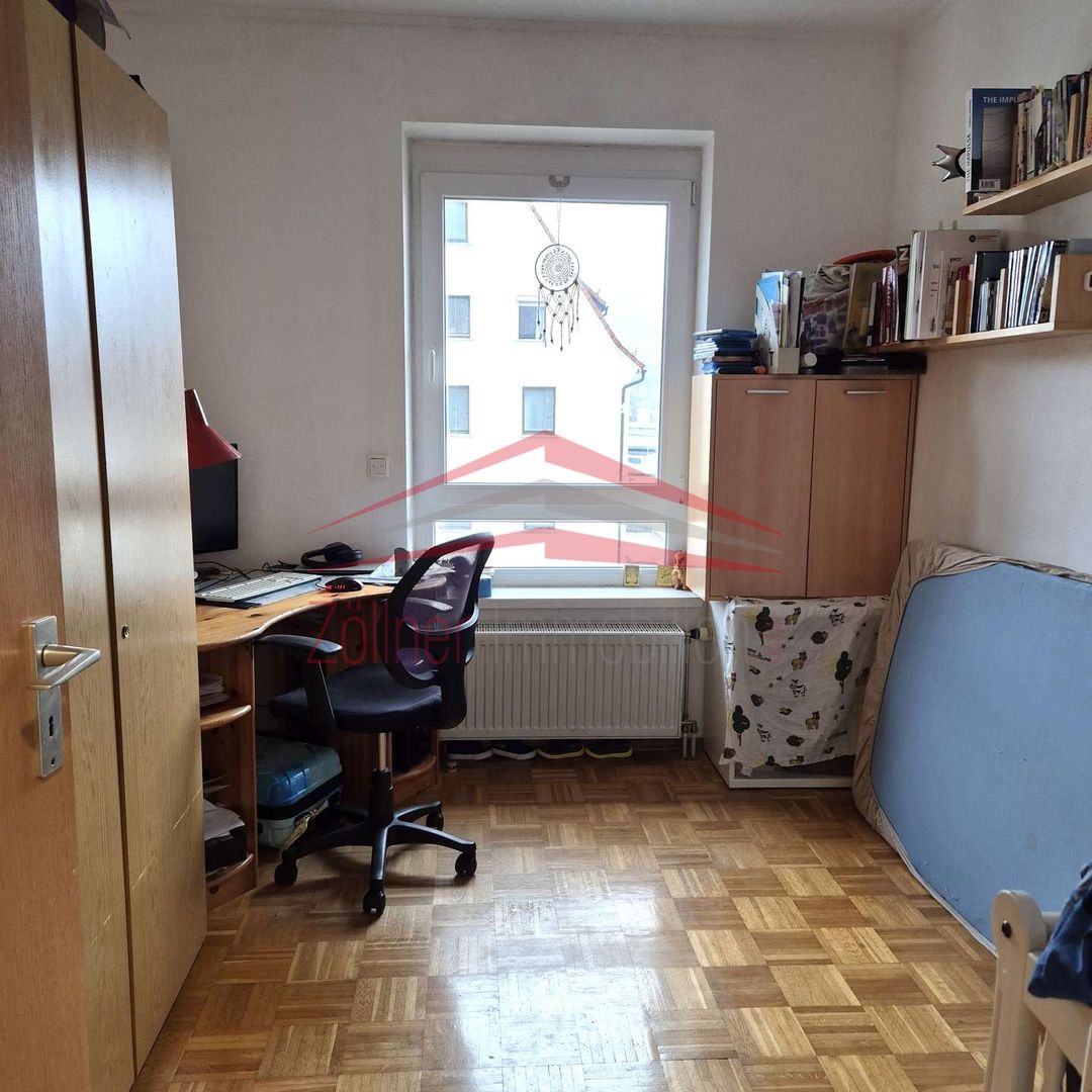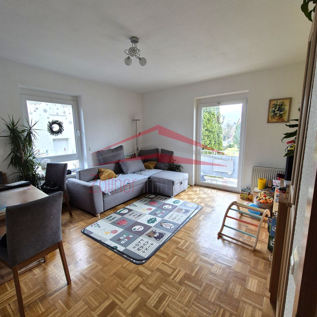 Herzstück der Wohnung ist das großzügige Wohnzimmer mit direktem Zugang zum Balkon, der einen angenehmen Blick ins Wohnumfeld bietet. Das Schlafzimmer ist ruhig gelegen und bietet ausreichend Platz für ein Doppelbett und Kleiderschrank. Ein weiteres Zimmer eignet sich ideal als Kinderzimmer oder Büro. Die separate Küche ist praktisch geschnitten und mit Fliesen ausgestattet. Das Tageslichtbad verfügt über eine Badewanne, Waschbecken und WC.