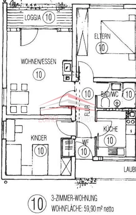 Durch den Eingangsflur gelangt man in sämtliche Räume der Wohnung. Das Wohnzimmer mit Zugang zum Balkon bildet den Kern der Wohnung. Neben dem Schlafzimmer & Kinderzimmer, welches auch als Büro genutzt werden kann, verfügt die Wohnung über eine Küche inkl. Einbauküche & Elektrogeräten (Backofen, Kochfeld, Dunstabzug mit Abluft, Spülmaschine) und ein Innen-Bad. Das Badezimmer ist mit WC, Waschbecken, Dusche und Waschmaschinenanschluss ausgestattet.