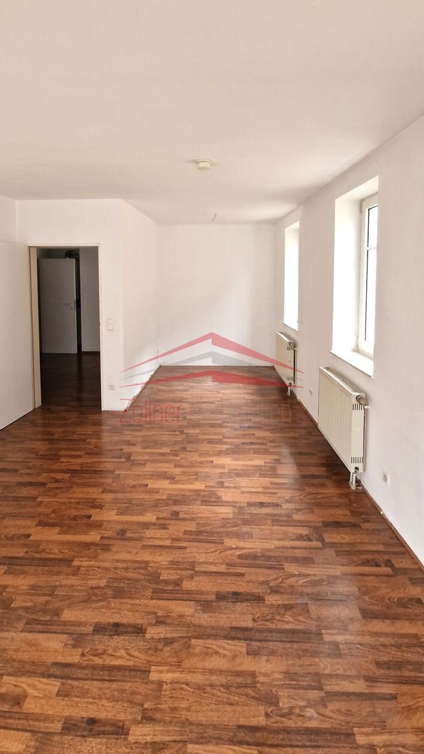 Die großzügige 2-Zimmer-Wohnung mit 70 m² verfügt über einen großen Wohn-/Essbereich, ein Schlafzimmer, eine kleine Küche inkl. einer einfachen Einbauküche, ein Badezimmer mit Dusche, Waschbecken und einem Waschmaschinenanschluss. Das WC ist separat.