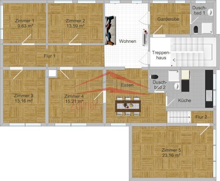 Zimmer 5: 23,16 m² - vermietet