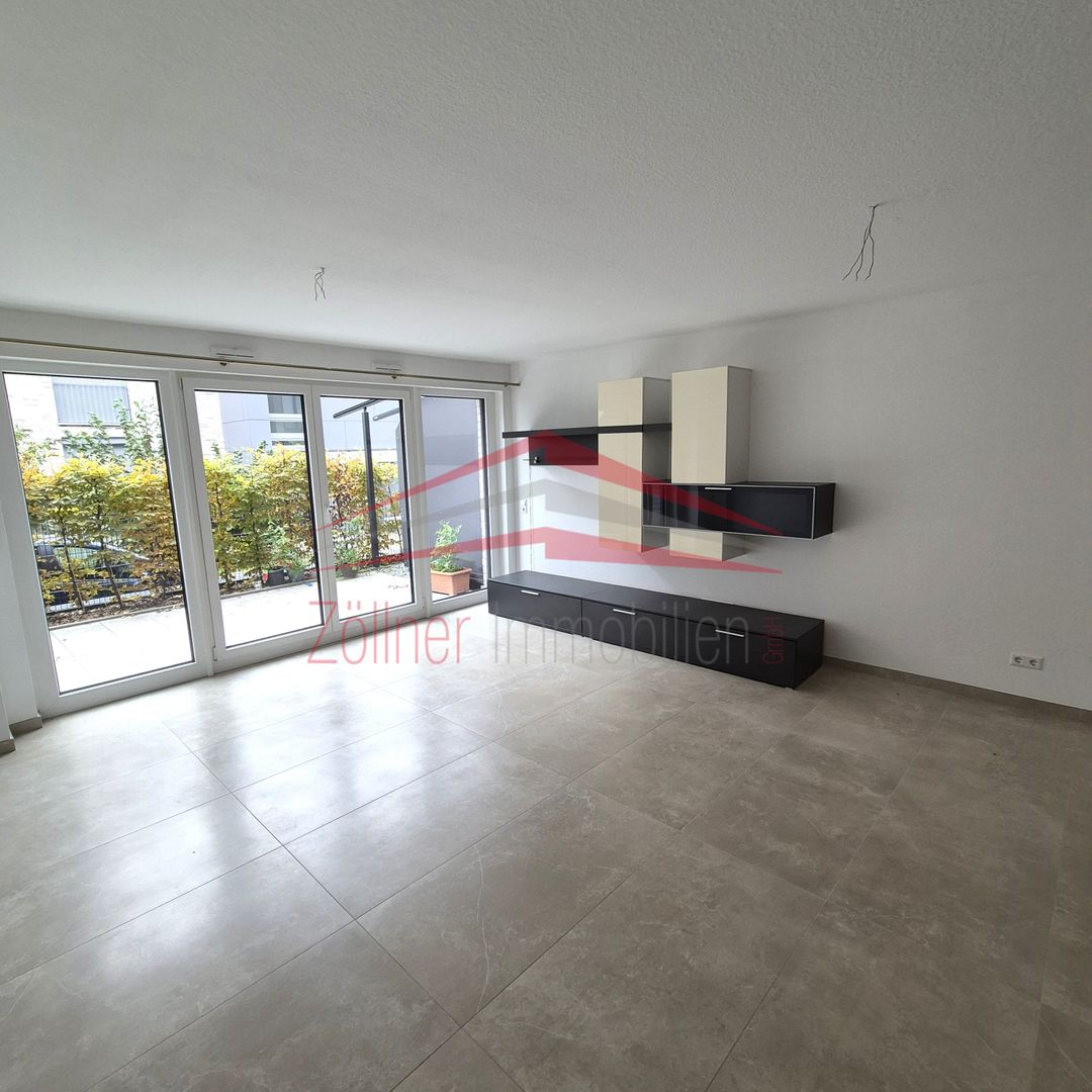 Im Erdgeschoss befindet sich der große offene Wohnbereich, in dem die Küche integriert ist, ein Kinderzimmer mit eigenem Tageslichtbad, das mit einer Dusche, einem Waschbecken und einem WC ausgestattet ist und einem separaten Gäste-WC. Die Einbauküche inklusive der Elektrogeräte ist im Mietpreis enthalten. Der direkte Zugang zur Terrasse erfolgt über den Wohnbereich.